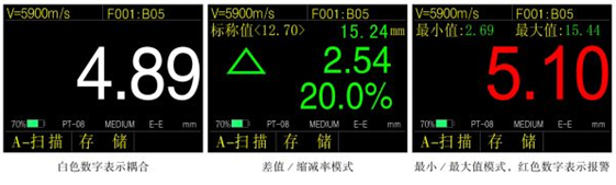 最大/最小值報警,報警時動態(tài)改變厚度讀數(shù)顏色